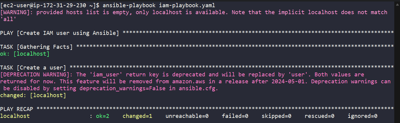 - name: Create IAM user using Ansible